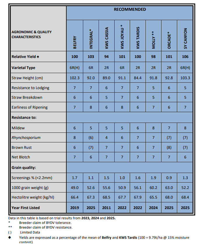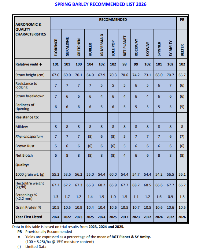 Farmers sign in hereSee the DAFM website for more details Winter Barley Recommended List 2026