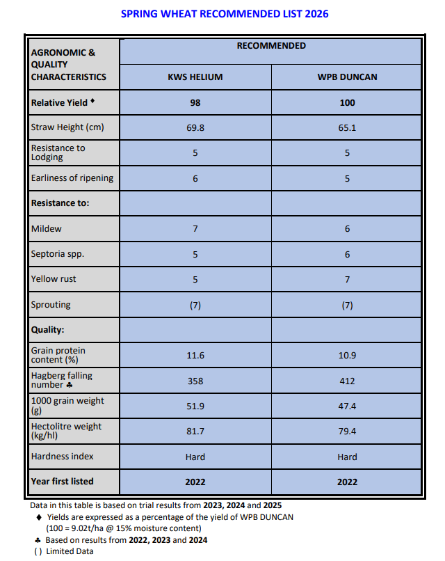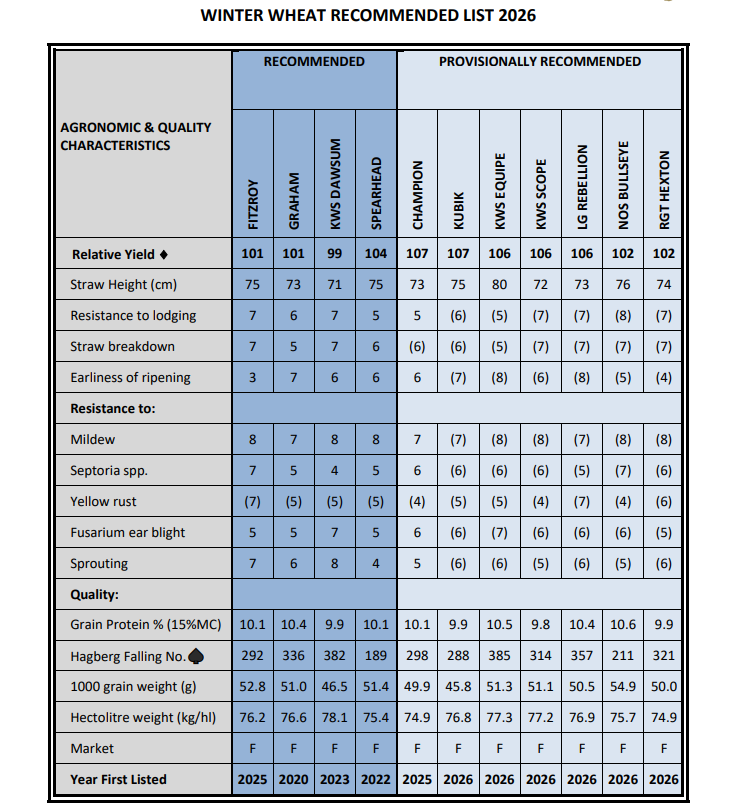 See the DAFM website for more details Winter Wheat Recommended List