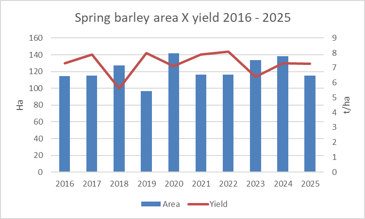 Farmers sign in hereSpring barley is Ireland's largest tillage crop. The 10 year average area of winter barley is 122,000 hectares, ranging from 97,000 ha in 2019 to 139,000 ha in 2024. This variation is influenced by autumn planting conditions and grain prices.